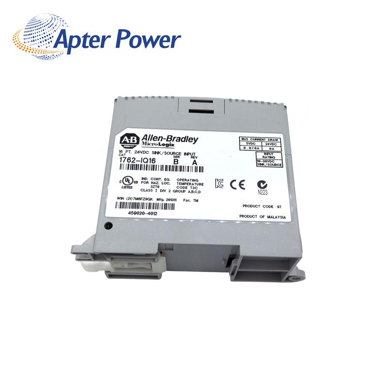 Модуль 1762-IQ16 имеет один светодиодный индикатор состояния, который показывает наличие питания и помогает определить источник всех проблем. Модуль обменивается данными и получает напряжение постоянного тока напряжением 10, 24 и 30 В через интерфейс шины 1762. Для подключения входных клеммных колодок в комплект поставки входит крышка, защищающая от прикосновения. 1762-IQ16 использует позиции битов от 0 до 15 слова 0 для входных клемм. Детали работы модуля необходимо настроить для каждого канала после установки. 1762-IQ16 — это шестнадцатиканальный модуль дискретного ввода, который используется с программируемыми логическими контроллерами MicroLogix 1100, 1200 и 1400. Этот ПЛК имеет компактную форму, в которой интегрированы минимальные аппаратные требования для работы в качестве ПЛК, такие как источник питания, ввод и вывод, коммуникационные порты и память. |